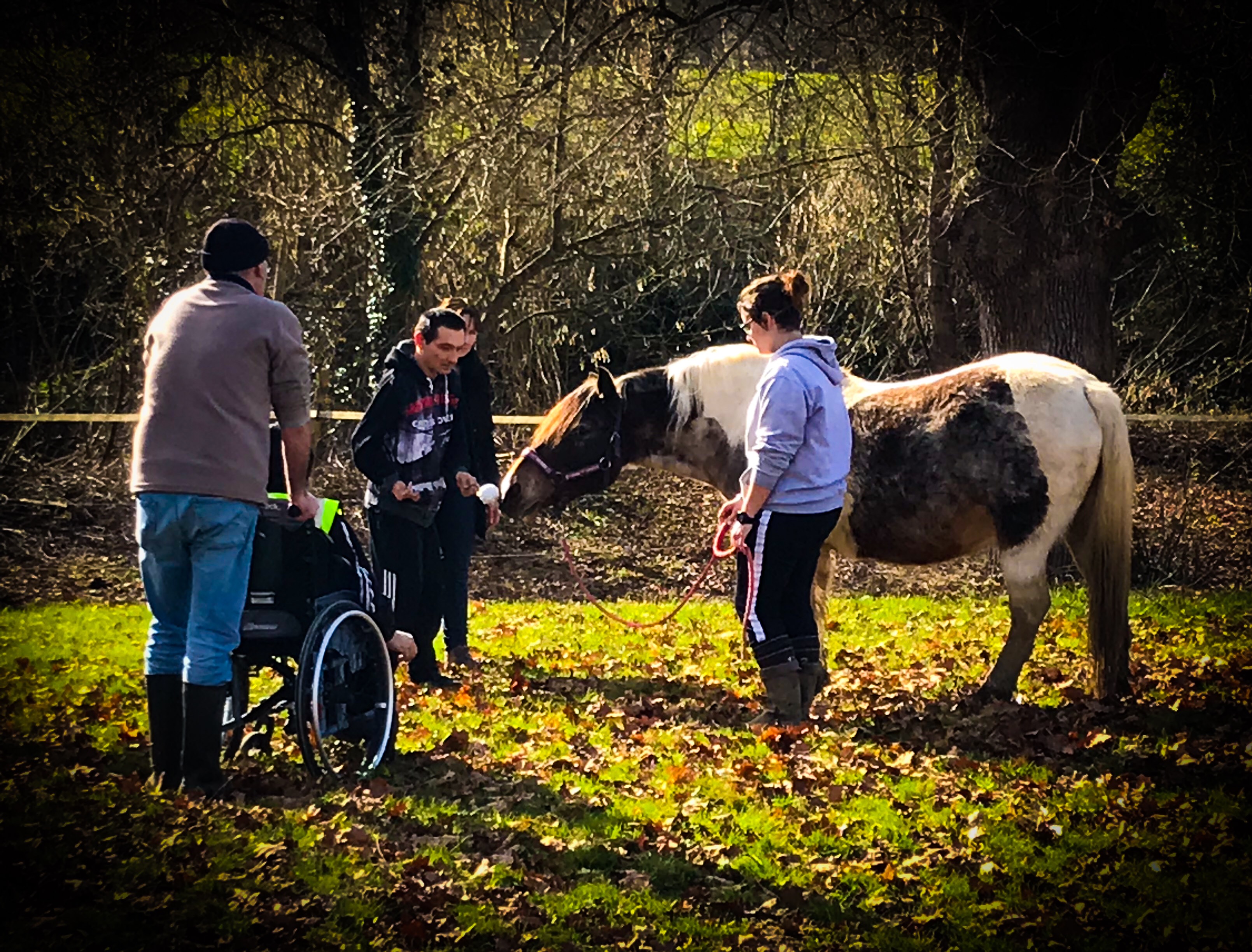 Nous accueillons des groupes constitués de 2 à 6 personnes accompagnées par les professionnels de l’institution. Une heure est consacrée au lien avec le cheval au travers d’activités variées (pansage, jeux à pieds, ballades, monte…) et une demi heure permet aux personnes accueillies de s’exprimer, à leur manière sur la séance ; et aux accompagnants de dire ce qu’ils ont remarqué. Ce temps permet de faire le lien entre l’atelier et le projet de la personne.